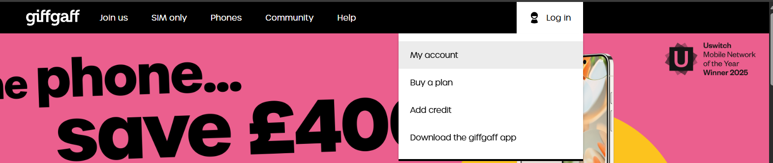 - 登录 Giffgaff 官网或 App,点击 Help。