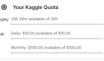 - Kaggle: 适合需要大显存(T4 x2)的任务。环境更稳定,且有 30 小时/周的明确额度,不用担心用到一半被踢下线。