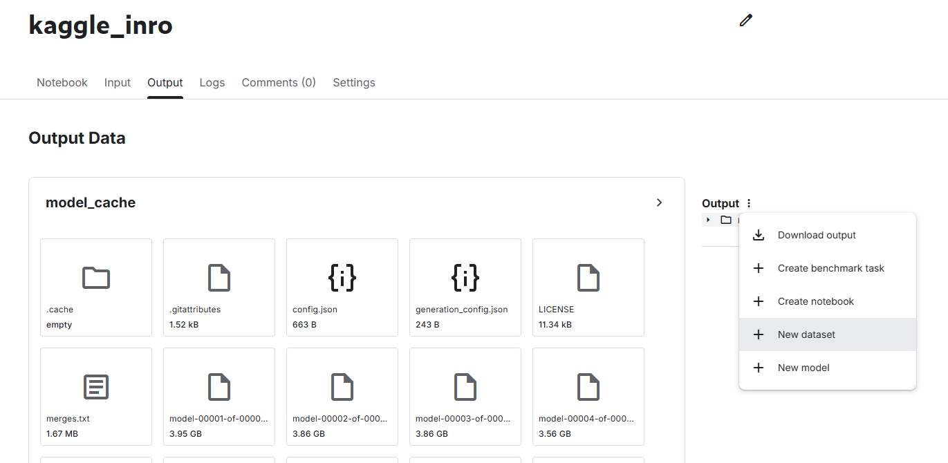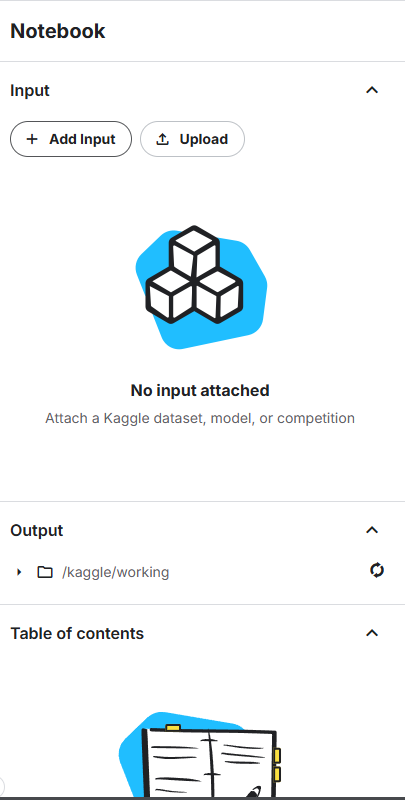/kaggle/input):只读区域。这里存放你上传的数据集或挂载的模型。读取速度极快,但无法写入。 - Output (