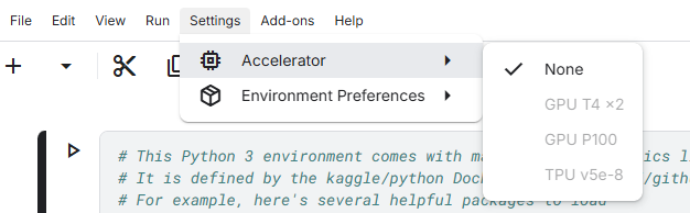 - 咱们的硬件加速(GPU/TPU计算资源)被放到了顶部菜单栏的Settings中的accelerator中了