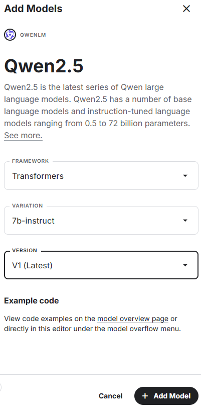 这是 Kaggle 最强大的功能。你可以直接在网页端搜索现成的模型,像挂载 U 盘一样挂载进来,不消耗下载流量和时间。