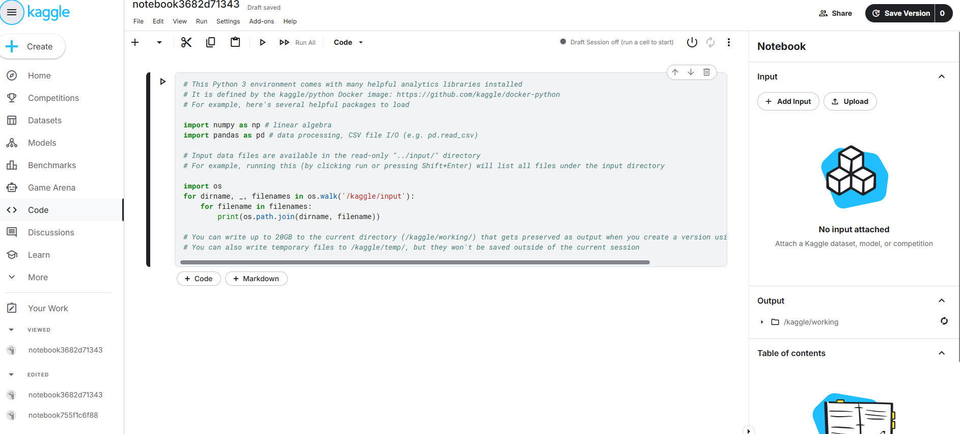 - 和Colab不一样的是,Kaggle的文件名没有后缀,不用加ipynb后缀