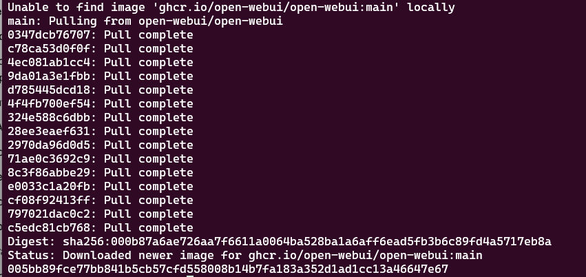 我们这里使用下面这条命令,来自动下载OpenWebUI镜像并且启动该服务