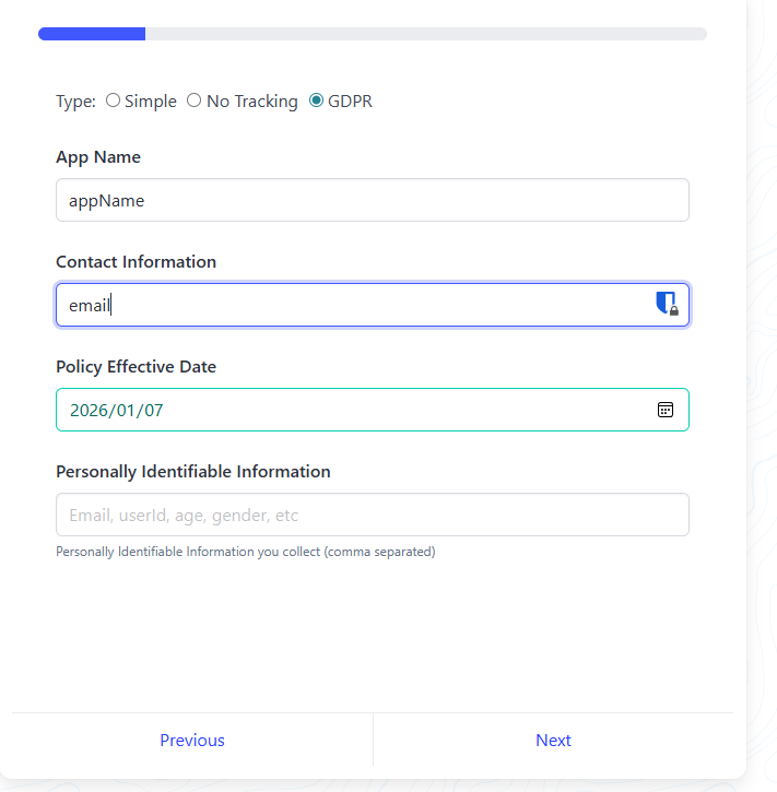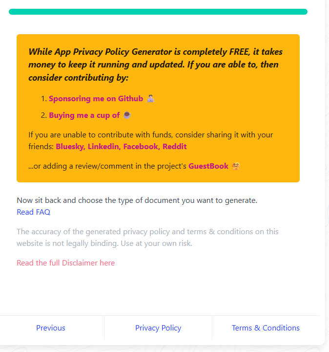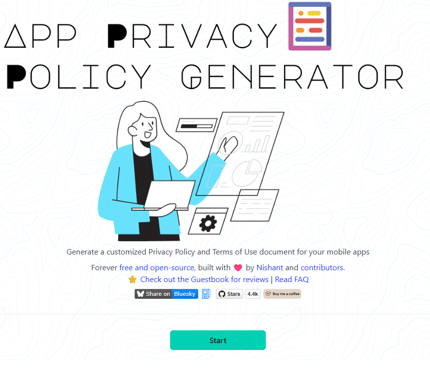 我们需要使用一个成熟的在线生成工具:App Privacy Policy Generator。这个工具在开发者社区口碑很好,生成的模板被 Google Play 认可度很高。